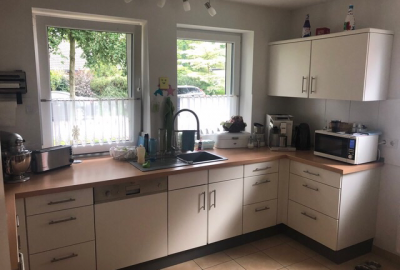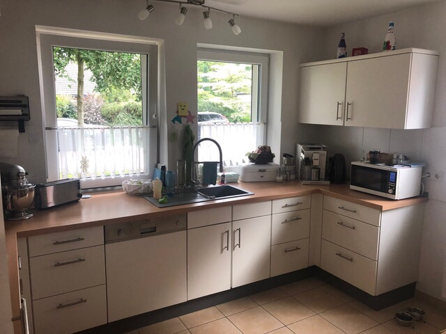 Die Einbauküche wird unentgeltlich zur Verfügung gestellt. Flur, Küche, Bad und Gäste-WC sind gefliest.
