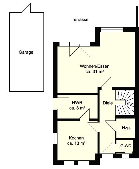 Es handelt sich um ein Haus mit sehr guter Ausstattung. Die gesamte Wohnfläche beträgt ca. 131 m². Es gibt fünf Zimmer, eine Küche, ein Vollbad, einen Wirtschaftsraum und ein Gäste-WC. Im Dachgeschoss befindet sich ein helles Atelierzimmer.