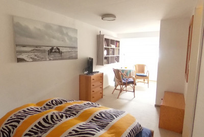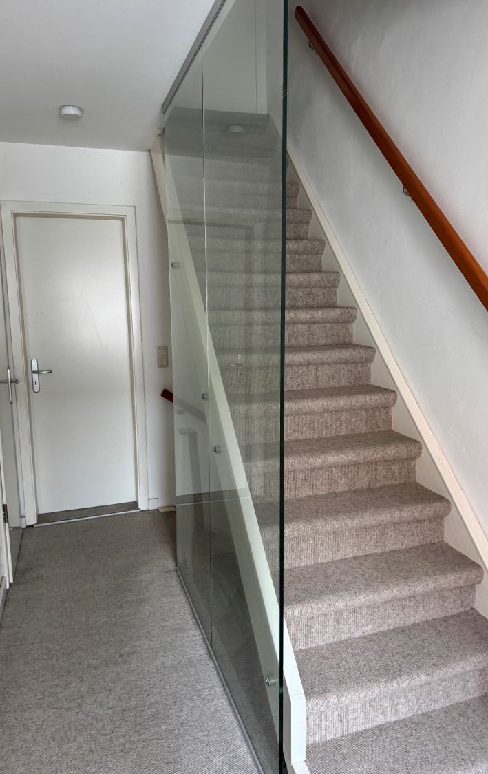 sind ein Schlafzimmer, ein Abstellraum sowie ein großzügiges Tageslichtbad untergebracht. Flur und Schlafzimmer sind mit Tretford-Teppichboden ausgelegt.
