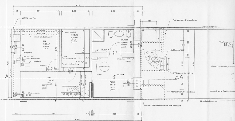 befinden sich 3 Abstellräume und der Heizungsraum. Ein älteres Duschbad ist ebenfalls vorhanden. Der Zugang zum Garten ist ebenfalls vom Keller aus möglich.
