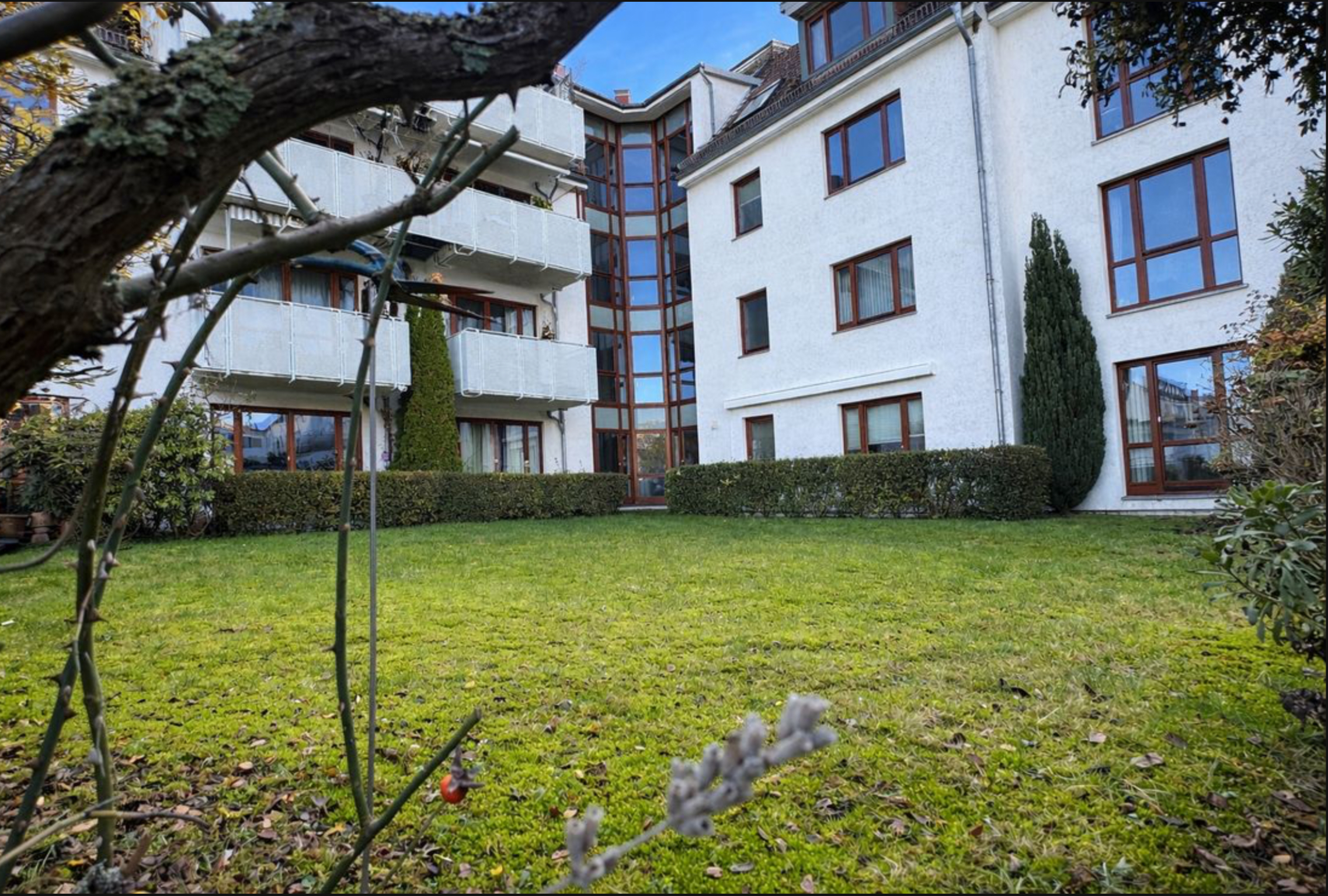 Die helle, sehr gut geschnittene Wohnung überzeugt durch bodentiefe Fenster, einen Südbalkon und eine Terrasse – beide ausgestattet mit elektrischen Markisen. Küche, Arbeits- und Schlafzimmer liegen zum ruhigen, begrünten Innenhof. Vom Wohnzimmer aus gelangen Sie direkt auf den attraktiven Südbalkon.