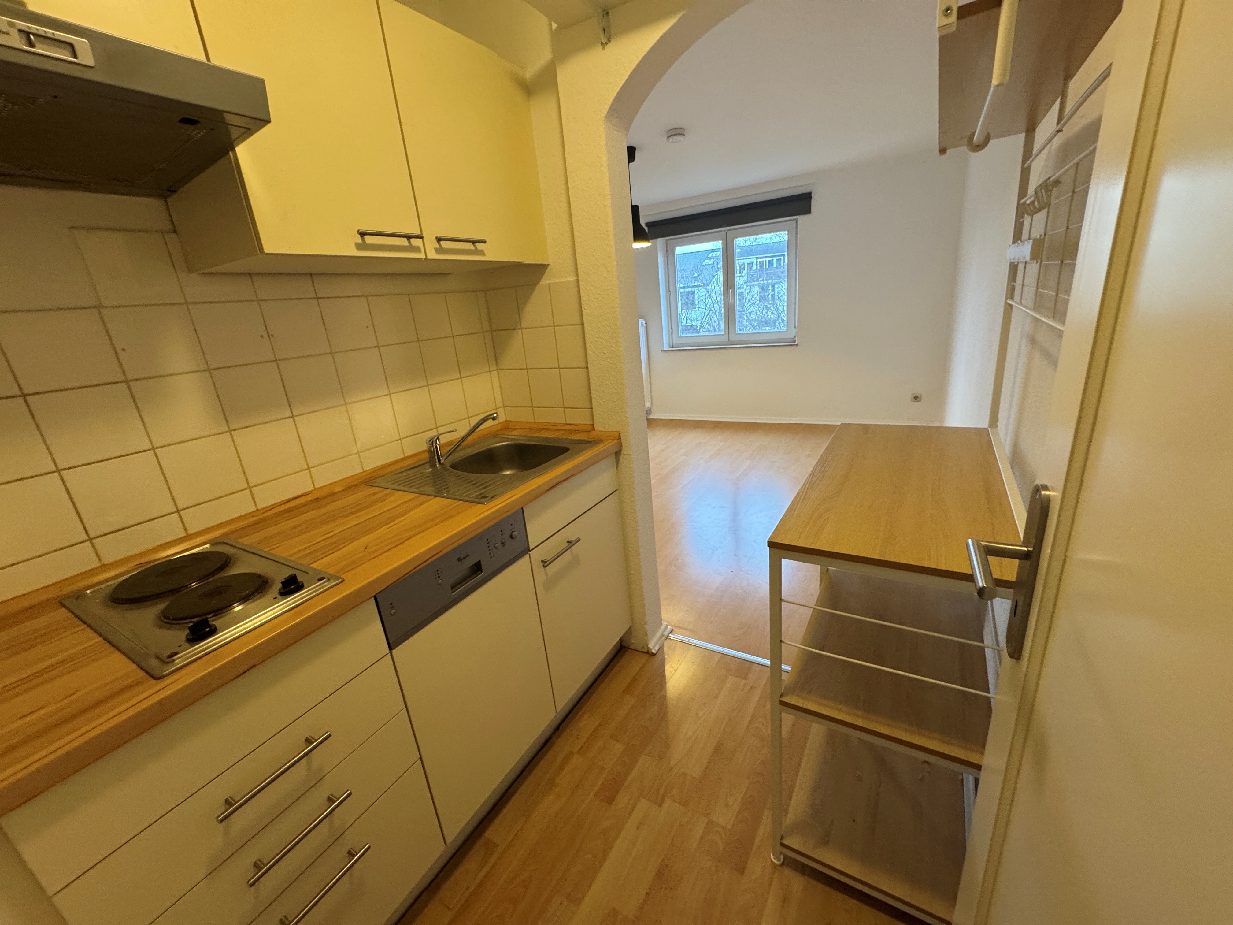 Die vorhandene Singleküche im kleinen Flur inklusive Geschirrspüler wird dem Mieter kostenfrei zur Nutzung überlassen.